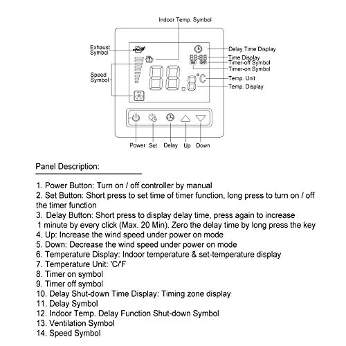 Contenuto della confezione: 1 ventola per condotto, 1 controller cablato intelligente LCD.