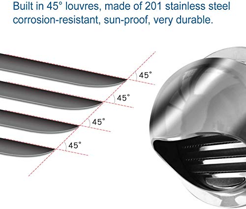 Questo elegante sfiato per ventola da parete in acciaio ha una maglia fine per impedire l'accesso ai parassiti e una chiusura ermetica per evitare perdite e spifferi indesiderati.Ideale per tutti i tubi di sfiato di asciugatrice, prese d'aria e aspiratori da bagno, aria condizionata, ventilatori e prese d'aria della cucina, tutte le prese d'aria della casa, sistemi di trasferimento di calore e di ventilazione, asciugatrici elettriche e a gas, cappe aspiranti da cucina, nonché un'ampia varietà di usi industriali.