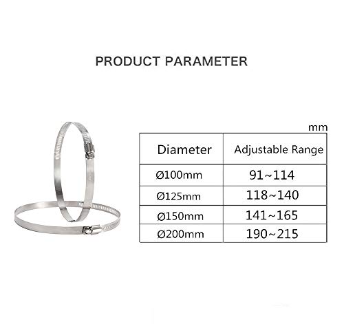 Hon&Guan 2 Pezzi Fascette Stringitubo Regolabili in Acciaio Inossidabile, Gamma di Serraggio da ø141mm a ø165mm, Larghezza di Banda 12mm