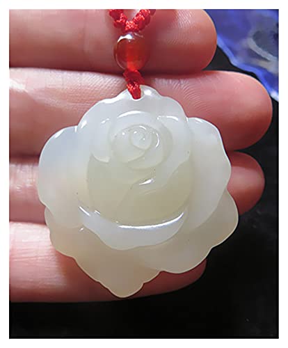 GuanRo Squisiti Signore Naturali Giada Giada Rosa Pendente Giada Fiore a Forma di Fiore Collana Gioielli Moda scolpita a Mano Uomo Fortunato amuleto Amo Regalo (Colore: White)