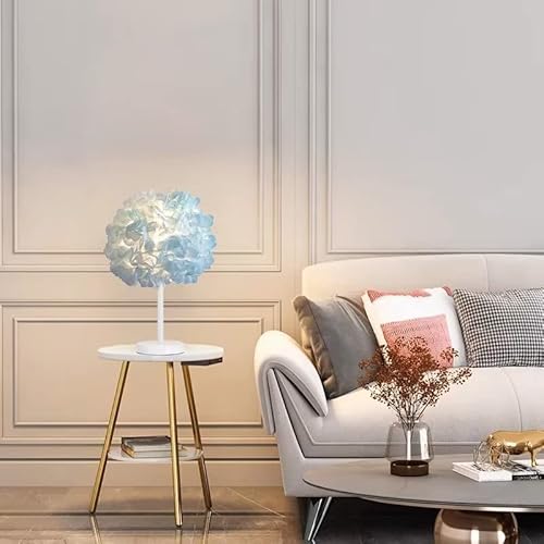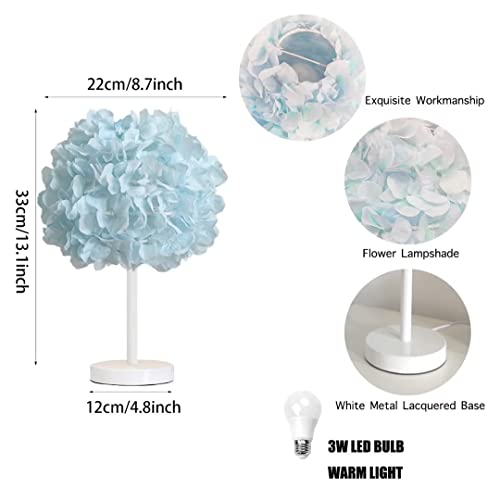 GUANSHAN Fiore Di Seta Blu Lampada da comodino Lampada da comodino Paralume in piuma Lampada da tavolo Paralume per soggiorno Camera da letto Decorazione della casa