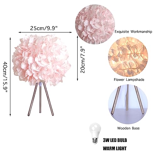 GUANSHAN Lampada da comodino a fiore di seta rosa Lampada da tavolo a fiore con paralume da tavolo con base in legno triangolare per soggiorno, camera da letto, decorazione della casa