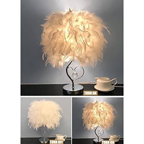 GUANSHAN Lampada da comodino in piuma Paralume da comodino Lampada da tavolo moderna in piuma Paralume da scrivania con cristallo nel cuore e base mentale per soggiorno, camera da letto, S