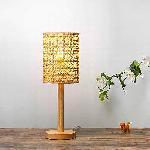 GUANSHAN Lampada da tavolo in rattan fatta a mano Luce notturna Lampada da comodino in rattan stile Wabi-Sabi Lampada da tavolo decorativa per camera da letto, soggiorno, stile 2