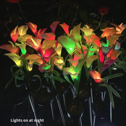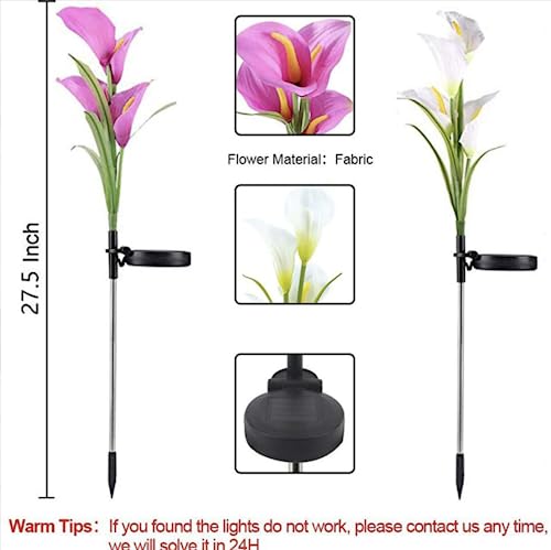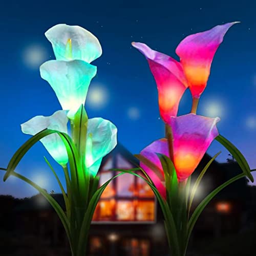 GUANSHAN 2 luci solari da esterno PC, luci solari a fiore di giglio di calla, luce solare a LED a fiore, cambio di luce a 7 colori, perfetto per giardino, cortile, patio, passerella (rosso + viola)