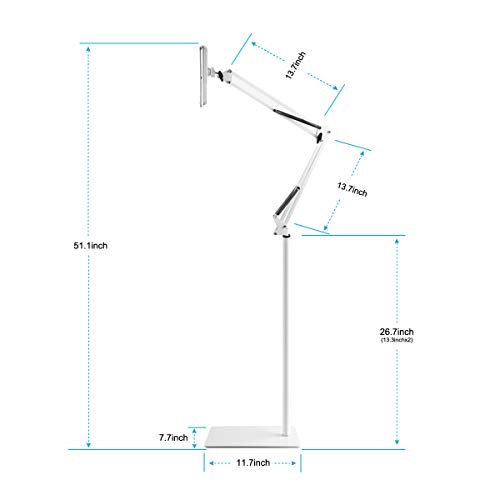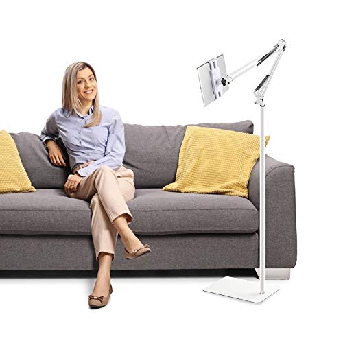 Guanshan Supporto da pavimento per tablet, supporto regolabile per tablet, braccio per iPad, tablet da 360 gradi, braccio per iPad da 3.5 a 10.6 pollici, colore: bianco (non adatto per iPad Pro 12.9)