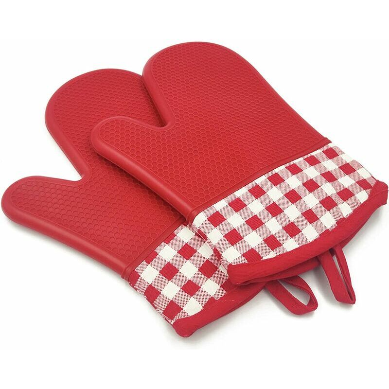 Resistente al calor a 300 °C, antideslizante - Agarraderas resistentes al calor, el gel de sílice es muy resistente al calor y puede proteger sus manos cuando manipula utensilios de cocina a alta temperatura. textura cálida y antideslizante, tiene un excelente agarre y no resbala. 【Asistente de seguridad flexible al hornear】 Guantes agarradores, agarradores de algodón y guantes de silicona Es un ayudante ideal para el manejo seguro de ollas, sartenes y ollas en la cocina, adecuadas para hornear, cocinar en el horno de barbacoa, asar a la parrilla, textiles de cocina para el hogar. 【Diseño único de silicona + tela de algodón】 Guantes de silicona, guantes térmicos, los guantes están hechos de silicona + tejido de algodón. El forro del guante es muy suave, transpirable, muy cómodo y flexible de usar. Los guantes de silicona miden 28 x 18 cm de largo, es muy seguro proteger tus manos. 【Guantes de horno de material seguro】Guantes de horno resistentes al calor, palma y agarradera de silicona