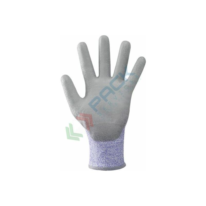 Guanti antinfortunistici da lavoro a filo continuo in fibre di polietilene alta densità/poliuretano con palmo ricoperto in poliuretano. Supporto con fibre anti taglio (HDPE) che permettono di ottenere il massimo livello di resistenza al taglio mantenendo uno spessore sottile ed ottima destrezza. Particolarmente indicato per manipolare oggetti taglienti come lastre metalliche, lamiere, oggetti appuntiti, ecc. in ambiente asciutto o relativamente pulito. Elevata resistenza meccanica e durata. Forma ergonomica, assenza di cuciture, ottimo comfort di calzata e flessibilità e polso elasticizzato e dorso aerato. Guanti da lavoro certificati CE, EN 388 (Guanti di protezione contro i rischi meccanici). Prodotto venduto a paia. Colore blu mélange/grigio, taglia 8.