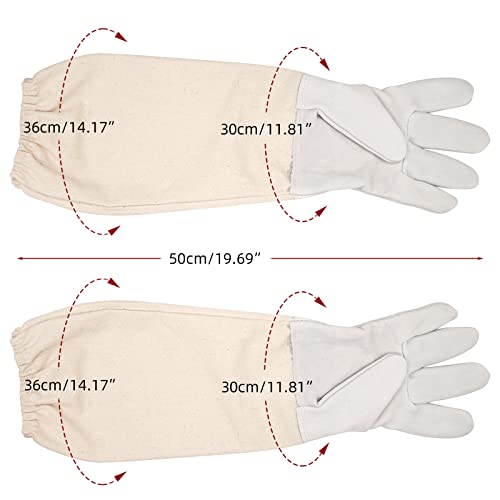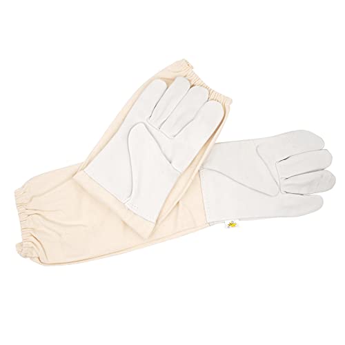 Guanti da Apicoltura Guanti da Apicoltore in Pelle di Capra Spessa con Tela Ventilata Maniche Lunghe Polsini Elastici Ventilati Guanti Protetti da Apicoltore per Protezione Mani Apicoltori (XXL)