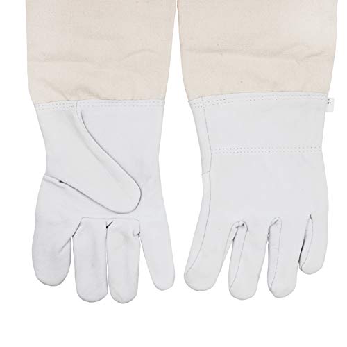 Guanti da Apicoltura Guanti in Pelle di Capra Spessi Guanti da Apicoltore con Tela Ventilata Maniche Lunghe Polsini Elastici Ventilati Guanti Protetti da Apicoltore per Protezione Mani Apicoltori (XL)