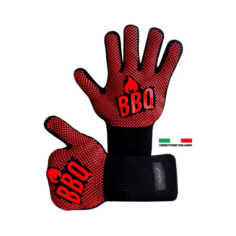 FIBRA RESISTENTE E DUREVOLE: guanti da cucina anti-calore realizzati con materiali di alta qualità, lavabili in lavatrice, lavabili in lavastoviglie, o meglio a MANI per una maggiore durata PROTEZIONE CONTRO LE ALTE TEMPERATURE: i nostri guanti da barbecue hanno un resistenza a temperature molto elevate di oltre 500°C (972°F) e fino a 6/7 secondi di resistenza MISURA UNIVERSALE: le sue dimensioni 34x13 ne consentono l'uso dalla maggior parte delle persone, il bracciale da 13 cm lo rende il migliore sul mercato, in quanto protegge l'avambraccio dal CALORE e dal FUOCO MULTI-USE 4 SEASONS: i nostri guanti possono essere utilizzati tutto l'anno per qualsiasi attività all'interno del vostro appartamento, ad esempio cercare oggetti, cucinare, pulire il camino