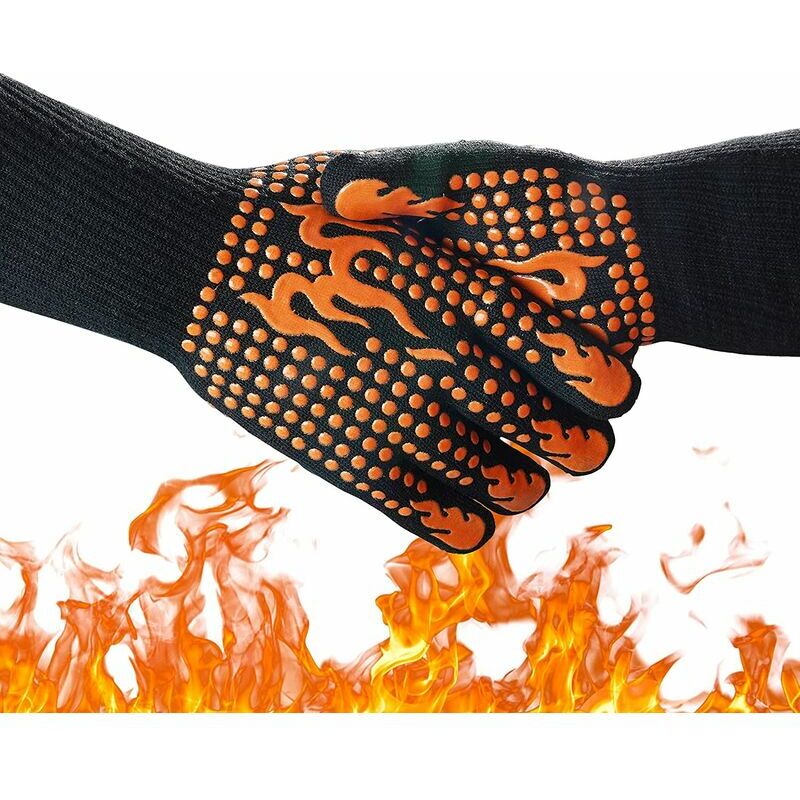 Guanti da grill: guanti da grill certificati EN407, EN420 in grado di resistere a temperature fino a 800 °C (1472 °F) per 10 secondi. Il polsino lungo protegge la parte centrale del polso e il guanto grill ha un'estensione di 14 cm per proteggere il polso, la lunghezza perfetta è più sicura. Facile da pulire Flessibile e riflettente: materiale in cotone per una facile libertà, speciali rivetti in silicone assicurano una presa salda in ogni momento. Ampia gamma di: Il nostro guanto da BBQ si adatta alla maggior parte degli uomini e delle donne, E adatto a varie casei, Barbecue all'aperto, forni, stufe, forni a microonde, saldatura, manutenzione di veicoli / elettricità, stampaggio di metalli e altre casei ad alta temperatura che richiedono protezioni per le mani. Nota: Calore guanti resistenti per cucinare possono prolungare il tempo di mantenimento degli oggetti caldi. Ma non è una protezione permanente contro il fuoco e il calore. Attendi qualche secondo affinché il calore