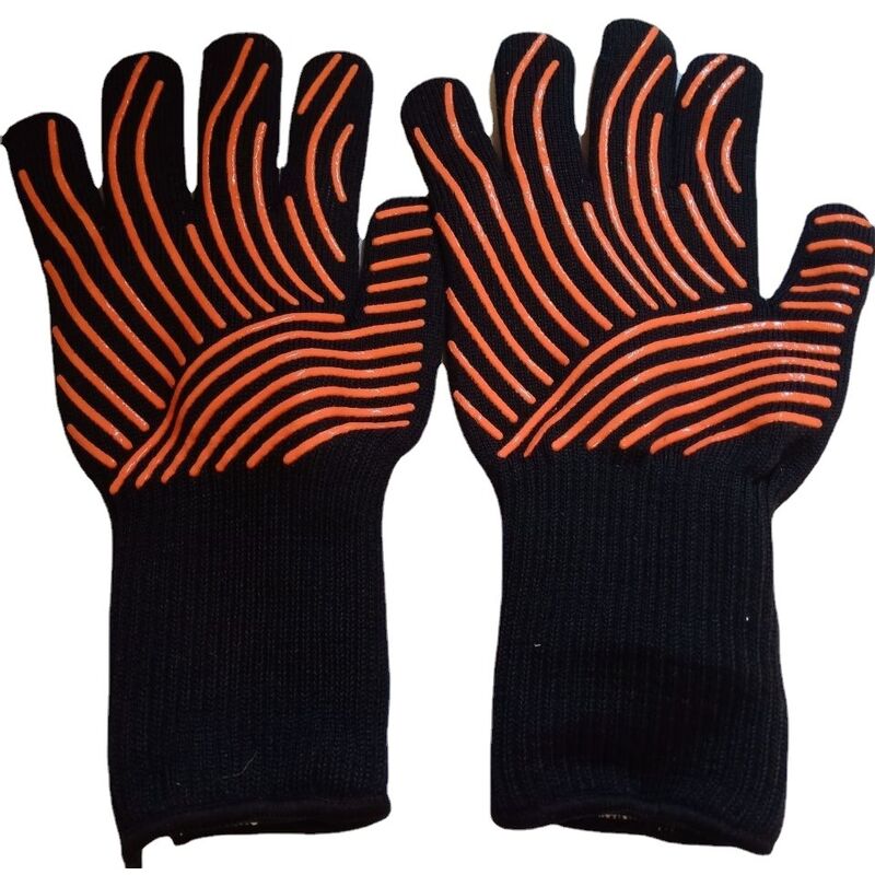 L'ACCESSORIO PERFETTO PER IL BARBECUE - Guanti perfetti per barbecue, affumicatore, forno o cottura di cibi. Con questi guanti puoi toccare oggetti caldi senza pericolo. MATERIALE DI QUALITÀ - Lo strato esterno è composto al 100% da fibre aramidiche, combinando Nomex e Kevlar. Queste fibre rallentano notevolmente l'aumento della temperatura. PRATICO E VERSATILE - I guanti da barbecue ignifughi sono ideali per oggetti caldi, che si tratti di un barbecue, un camino, una casseruola in ghisa o un forno . RESISTENTE AL CALORE - Guanti da barbecue e da forno. Offrono protezione fino a 500°C e in aggiunta un polsino esteso al polso. PERFETTO PER ABILITÀ FINE MOTORIE - Grazie al loro design a 5 dita, non sei limitato nella precisione dei tuoi movimenti sopra al barbecue o in cucina.