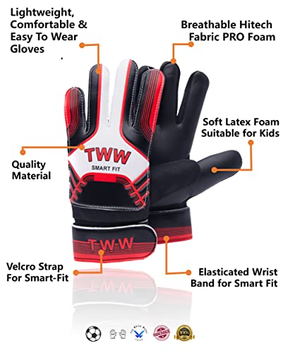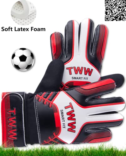 Guanti da calcio da portiere per bambini, in lattice morbido, unisex (7, rosso e nero)