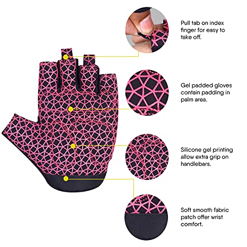 Guanti da ciclismo in gel, imbottiti senza dita, per mountain bike, antiscivolo, per palestra, MTB, mezza dita, riflettenti, ammortizzanti, escursionismo, sport (rosa, L)