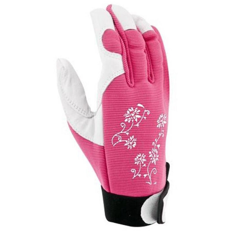Guanti colorati ideali per l'utilizzo in giardino Taglia 8 Realizzati in spandex e pelle Elastico stringi polso con chiusura regolabile a fascetta con velcro.