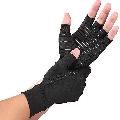 Guanti a compressione anti-artrite in rame senza dita, per il sollievo dal dolore, taglie S, M, L (large)