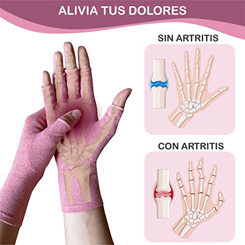 Guanti a compressione artrite donna, trattamento termico per alleviare il dolore alle mani e alle dita, guanti artrosi mani donna, Rosa, Taglia unica