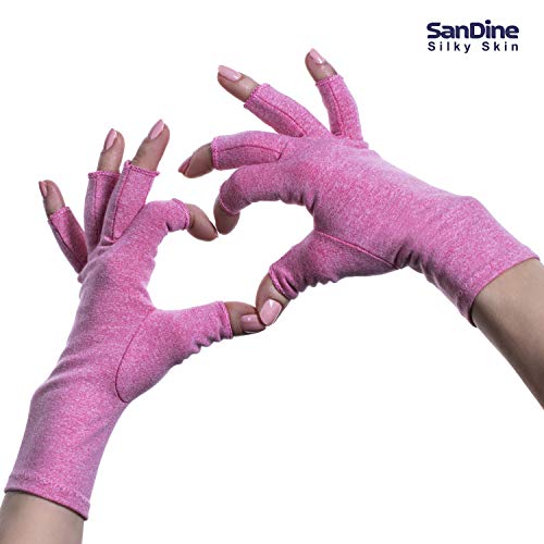 Guanti di Compressione a Dita Aperte - Guanti per Artrite per Donne, Uomini - Sollievo dal Dolore Articolare di Alta Qualità - Supporto per Mani Reumatoide e Osteoartrite - di Sandine (Rosa, M)