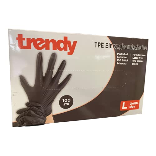 TPE, guanti usa e getta, colore nero, confezione da 100 pezzi, senza polvere e lattice (L)