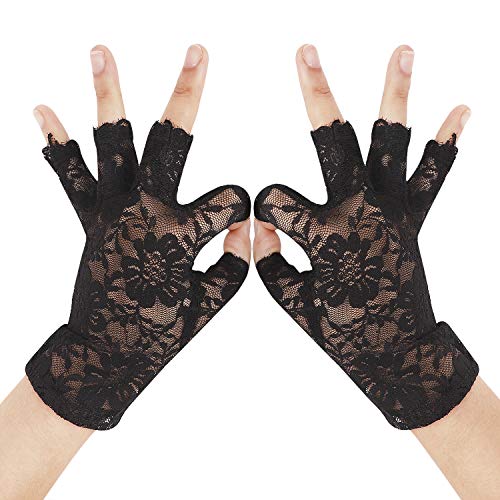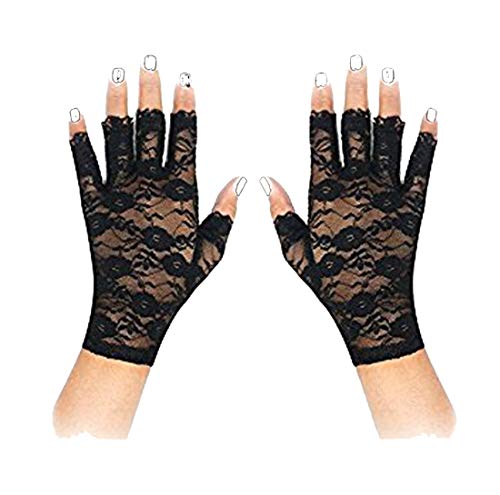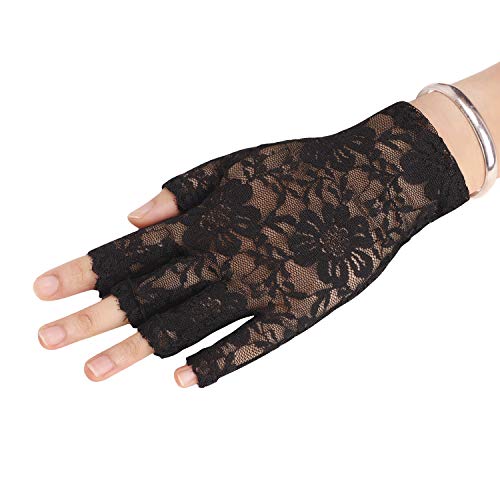 Guanti da donna in pizzo per guida, guanti a mezza dita, eleganti per ballo, serata, cerimonia Nero taglia unica