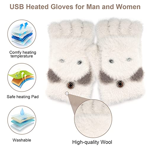 Guanti elettrici riscaldati per donne e uomini, ricaricabili e lavabili, con USB, riscaldamento, in lana, guanti per computer portatili, per riscaldamento elettrico invernale, per Ty;