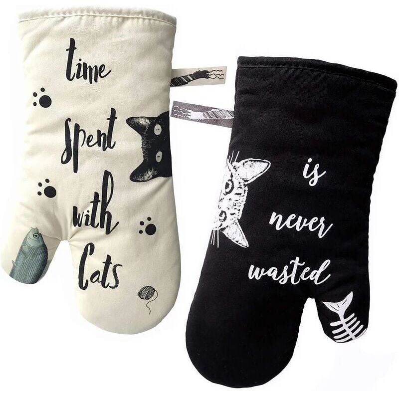 Proteggere mani e avambracci da piatti caldi, pentole e griglie da forno durante la cottura o la grigliatura. 100% cotone all'interno, offre una sensazione morbida e confortevole. Gatto e gatto