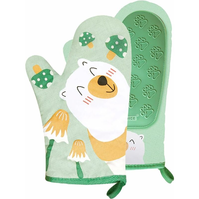 Ogni guanto è progettato con silicone antiscivolo e passanti per appendere i guanti da forno ai ganci. Unisce piacere e funzionalità. Scegli i tuoi guanti da forno preferiti e goditi ogni volta che cucini, cuoci e griglia. 【Elevata resistenza all'abrasione. riscaldare fino a 300 gradi: i guanti da forno sono realizzati in cotone a doppio isolamento e silicone antiscivolo, privi di BPA, ottima fattura, in grado di resistere al calore. temperature da -40°C a 300°C e il tempo di isolamento è di circa 20 secondi. I guanti da forno lunghi 27 cm proteggono anche le mani e gli avambracci da cibi caldi, pentole e griglie durante la cottura, la cottura al forno o la griglia. < p>【Motivo antiscivolo con artigli d'orso, impugnatura stabile】 Il guanto da forno ha un