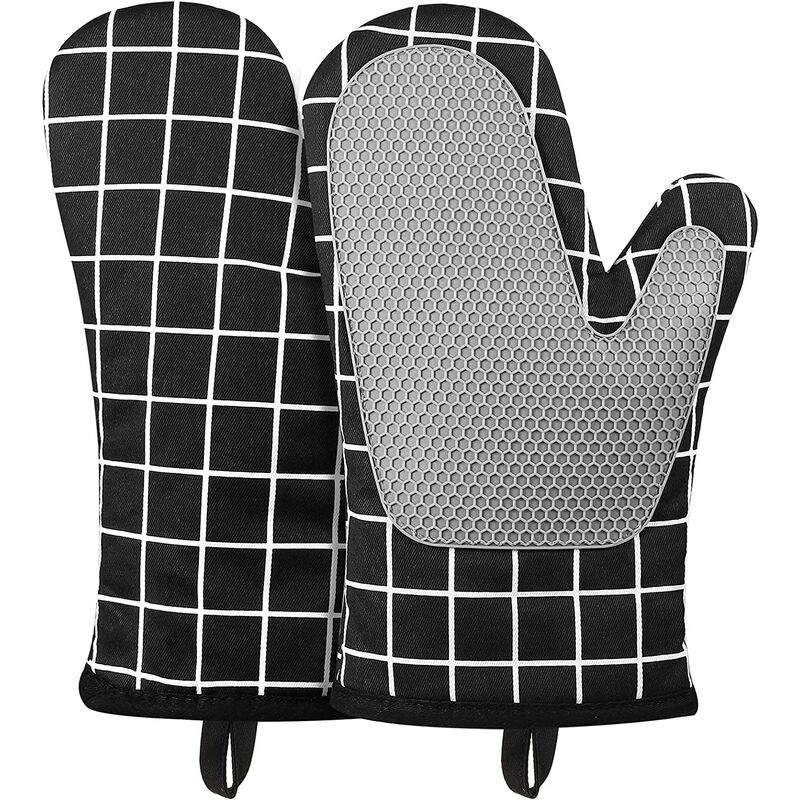 Materiale sicuro e resistente al calore: i guanti da forno sono realizzati al 100% in silicone e fodera in cotone trapuntato di alta qualità. Materiale resistente al calore in grado di resistere a temperature da -40°C a 230°C. Silicone antiscivolo: i guanti da forno sono dotati di silicone speciale che fornisce materiale aderente, quindi non devi più preoccuparti del tuo ciotola di cibo caldo che scivola o cade quando li togli dal microonde. FACILE DA PULIRE: Il materiale piacevole e inodore può essere facilmente pulito. Puoi anche capovolgere i guanti, pulire l'interno e lasciarli asciugare, quindi rimetterli semplicemente. TAGLIA PERFETTA: La dimensione del guanto da forno (27*18 cm) è perfetta sia per le mani degli uomini che delle donne. Che tu stia cucinando, cucinando o perforando una teglia o una casseruola, il design della punta delle dita ti consente di avere un'idea di tutto. Versatile: i nostri guanti sono adatti per piani cottura, microonde, grill, outdoor cucine