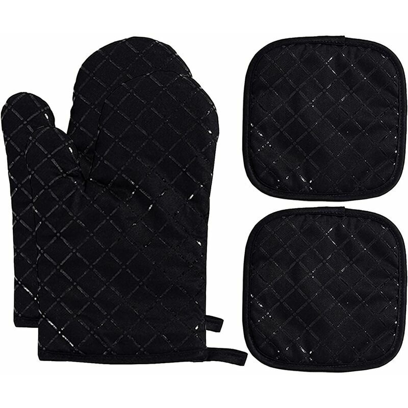 Guanti altamente resistenti al calore, ti proteggono da scottature e ustioni dolorose. Manico antiscivolo, fodera in cotone di alta qualità, grande comfort. Comodo da indossare utilizzare e appendere, i guanti da forno possono essere annidati uno dentro l'altro per riporli senza occupare spazio in cucina. Questo set di accessori con 2 guanti da forno e 2 presine, è perfetto per l'uso quotidiano e andrà bene con la tua casa e la tua cucina. I guanti da forno possono essere resistenti al calore e al freddo e possono essere utilizzati in forni, pentole calde, padelle, ecc.