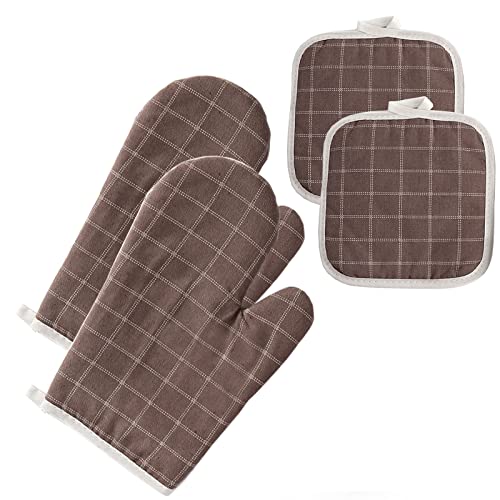 Guanti da Forno e Presine da Cucina 4 Pezzi,Sottobicchiere Professional Resistenti al Calore Fino a 300 ℃ Antiscivolo Perfetto per Cucinare Grill BBQ