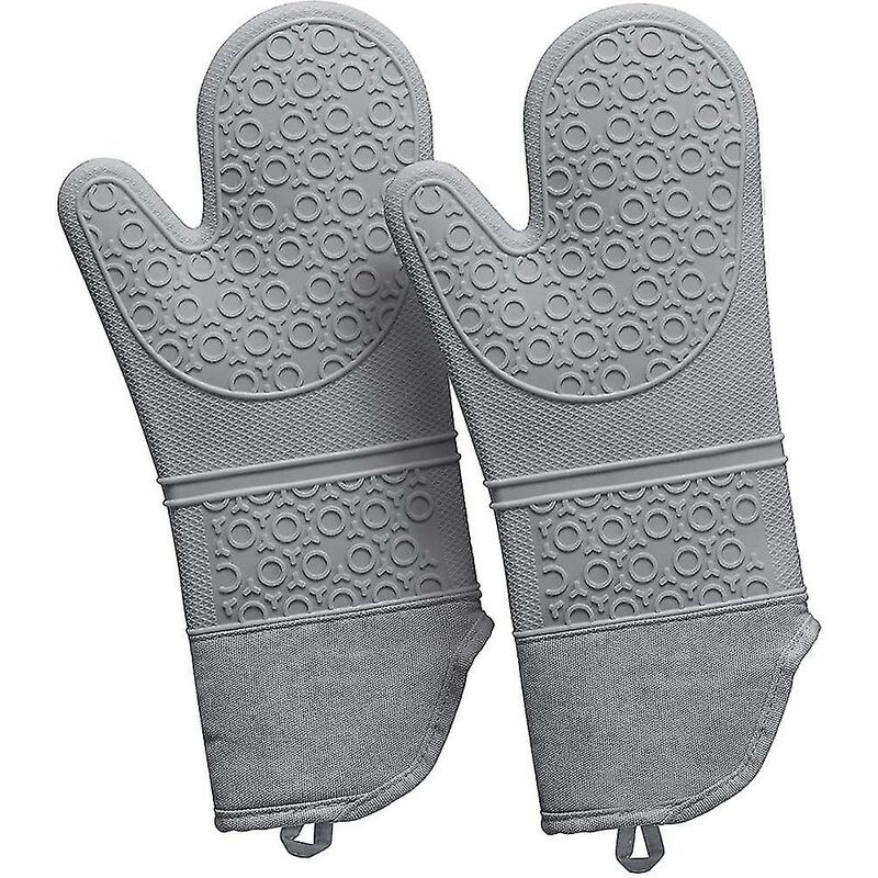 Contenuto del prodotto [B-grigio].Realizzato con silicone alimentare privo di BPA, questo set di guanti da forno è durevole, non tossico, resistente al calore, alle macchie e sicuro per i tuoi cari. Il materiale in silicone impermeabile non è influenzato dal vapore o dai liquidi caldi, quindi i ripiani della tua cucina rimangono asciutti e protetti. Possono anche essere lavati in lavatrice e asciugati in asciugatrice per rinfrescarne l'aspetto. Guanti da forno durevoli e flessibili di alta qualità con una superficie strutturata a fiocco di neve per una presa forte. Resistente al calore fino a 500 gradi F. I guanti da forno extra lunghi da 15 pollici proteggono le mani e gli avambracci da pentole calde e acqua bollente. Sono anche resistenti al vapore e impermeabili e non assorbono liquidi. Rispetto ai guanti da forno in tessuto, i nostri guanti da forno in silicone sono facili da pulire dopo l'uso. Quando hai finito, risciacqua il guanto da forno o strofinalo con un panno umido panno