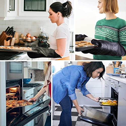 【Impugnatura Liscia Antiscivolo】 Il guanto da forno è progettato con una texture unica e geniale ed è molto morbido. guanti da forno neri l'altezza sporgente della superficie del palmo è di 1 mm, che riduce l'area di contatto tra te e il calore e ha una presa stabile e antiscivolo. Quando togli la padella calda dal forno, la pentola non scivolerà dalle tue mani.
