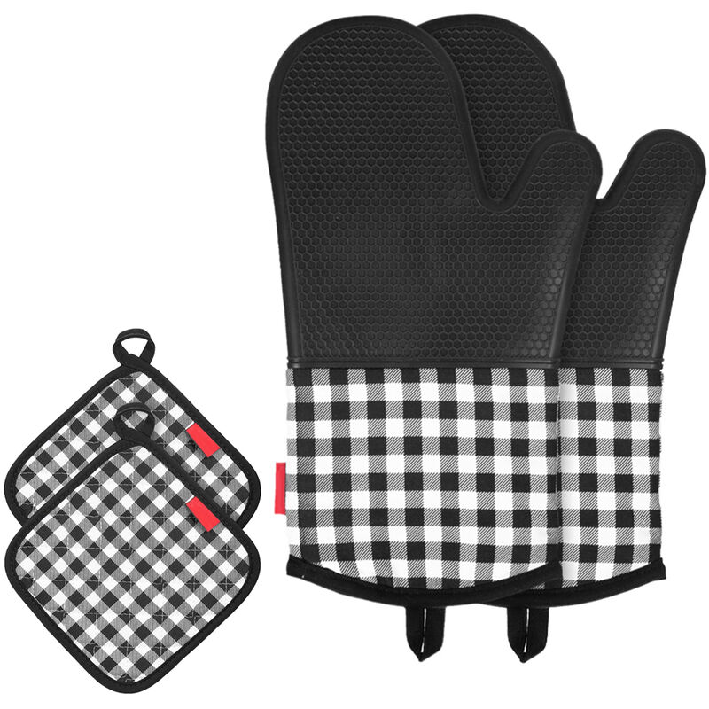 Il set include un paio di guanti da forno e due presine. I guanti extra lunghi sono realizzati in silicone e cotone, fornendo una resistenza al calore superiore per proteggere le mani. I sottovasi con fodera in cotone trapuntato e bordi rivestiti possono proteggere il tuo tavolo da graffi e macchie. Specifiche: Materiale: silicone + cotone Colore: rosso / grigio / nero (Opzionale) Motivo: plaid Misura guanto: 19 * 33 cm / 7,5 * 13 pollici Dimensioni presina: 17 * 17 cm / 6,7 * 6,7 pollici Dimensioni confezione: 35 * 22 * 3,5 cm / 13,8 * 8,7 * 1,4 pollici< br /> Peso del pacchetto: 360 g / 12,7 once Elenco dei pacchetti: 1 * Paio di guanti da forno 2 * Sottopentole