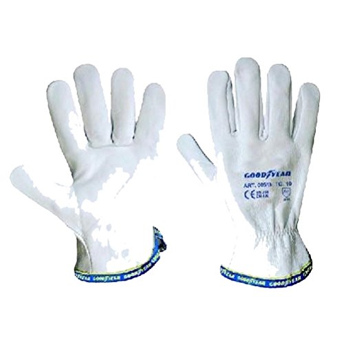 Guanti da giardinaggio Goodyear in pelle pieno fiore di groppone bianco orlato taglia 8