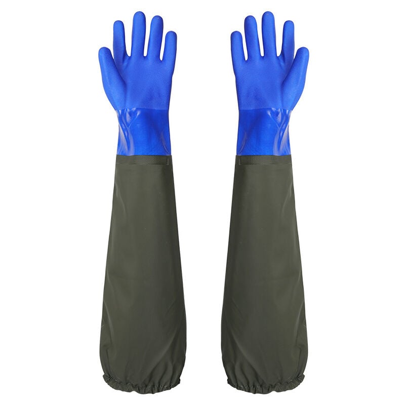 Protegge le mani da oli, sostanze chimiche, idrocarburi, ottimo anche per i solventi. Lunghezza dei guanti da laghetto esteso: 650 mm. Protezione impermeabile guanti in PVC la fascia elastica sul polsino per una vestibilità salda in ogni situazione. Ideale per l'uso in condizioni di bagnato o foresta, agricoltura, industria di pulizia. Guanti per la pulizia dello stagno, larghezza del palmo: 11 cm. Nota: le dimensioni sono tutte misurate manualmente, si prega di consentire un piccolo errore.
