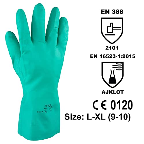 HMH Guanti in gomma nitrile, misura L e XL, resistenti agli agenti chimici, guanti protettivi lunghi (1, Large (9)
