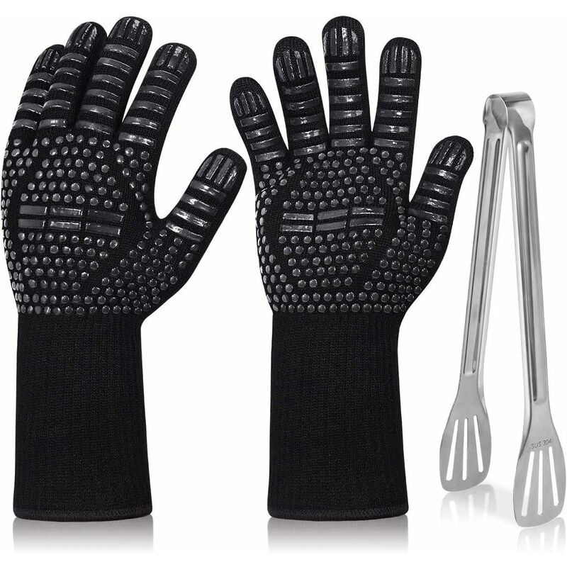 Guanto da griglia: i guanti da griglia certificati EN407 resistono a temperature elevate fino a 800 ° C. Lo strato esterno di aramide resiste alle alte temperature di 800 ° C e non si accende né accende fiamme libere. Morbido e antiscivolo: il design a 5 dita consente una facile presa di forchette per griglia, pietra per pizza, ghisa per lodge, maniglie di forno olandese caldo e pentole. Lo speciale rivestimento in silicone garantisce sempre una presa salda. Protezione estesa e presa salda: i polsini lunghi dei guanti per grill coprono i polsi meglio di un normale guanto da forno e impediscono che il polso e l'avambraccio si brucino quando ci si trova in un forno caldo. Le cinghie in silicone sulla superficie assicurano una presa salda. Facile da pulire e riporre: include un paio di guanti, che facilitano il trasporto di piatti e piatti caldi rispetto a un guanto da forno e una presina. Facile da lavare in lavatrice oa mano dopo l'uso. Fornito con pinze per griglia in acciaio