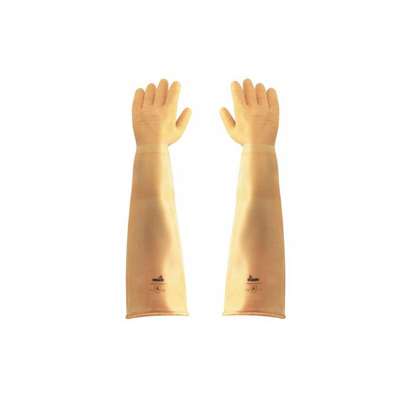 GUANTI IN LATTICE LUNGHI PARAZIGRINATO PER MUNGITURA CM 60 TG 10 Guanti in lattice parazigrinato di cm. 60. • Palmo e dorso zigrinati • Interno liscio • Bordino salvagoccia • Colore naturale Taglia 10.
