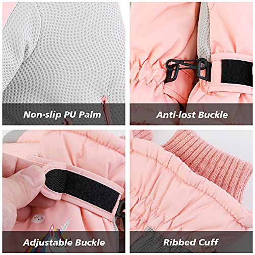 Guanti da sci invernali per bambini, con unicorno, rosa, impermeabili, antiscivolo, foderati in pile, per ragazze, ragazzi, bambini dai 7 ai 12 anni