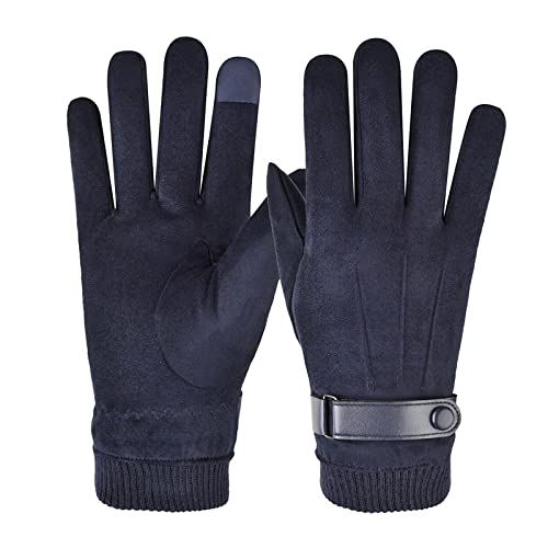 Guanti Invernali, Guanti da Uomo Touch Screen Invernale Tenere al Caldo Guanti in Pelle Antiscivolo in Cashmere Spessa Antivento - Regalo Freesize Blu
