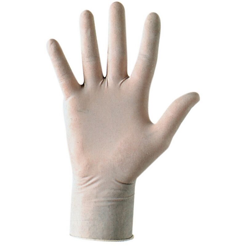 In lattice naturale talcato AQL 1,5 Peso gr. 5 circa. Monouso, ambidestri. Confezione da 100 pezzi Taglia XL