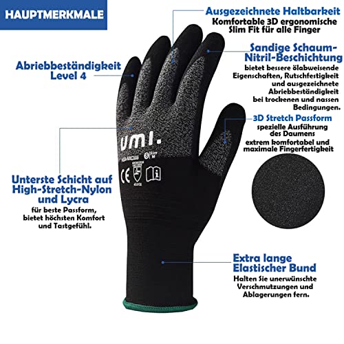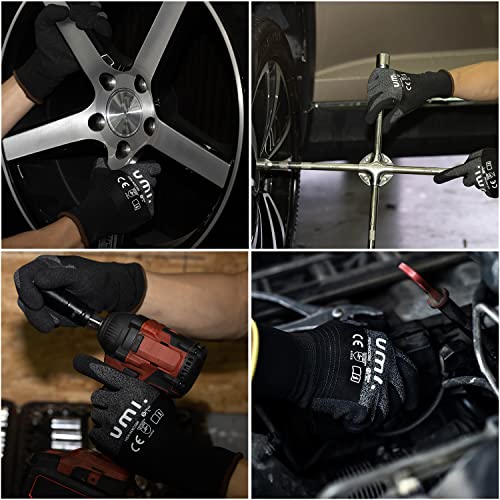 Umi Guanti da lavoro di montaggio 6 paia, Palmo in schiuma di nitrile resistente, resistente all'abrasione, Sottile e leggero, nylon, Antiscivolo, Guanti da giardinaggio, Taglia 8/M