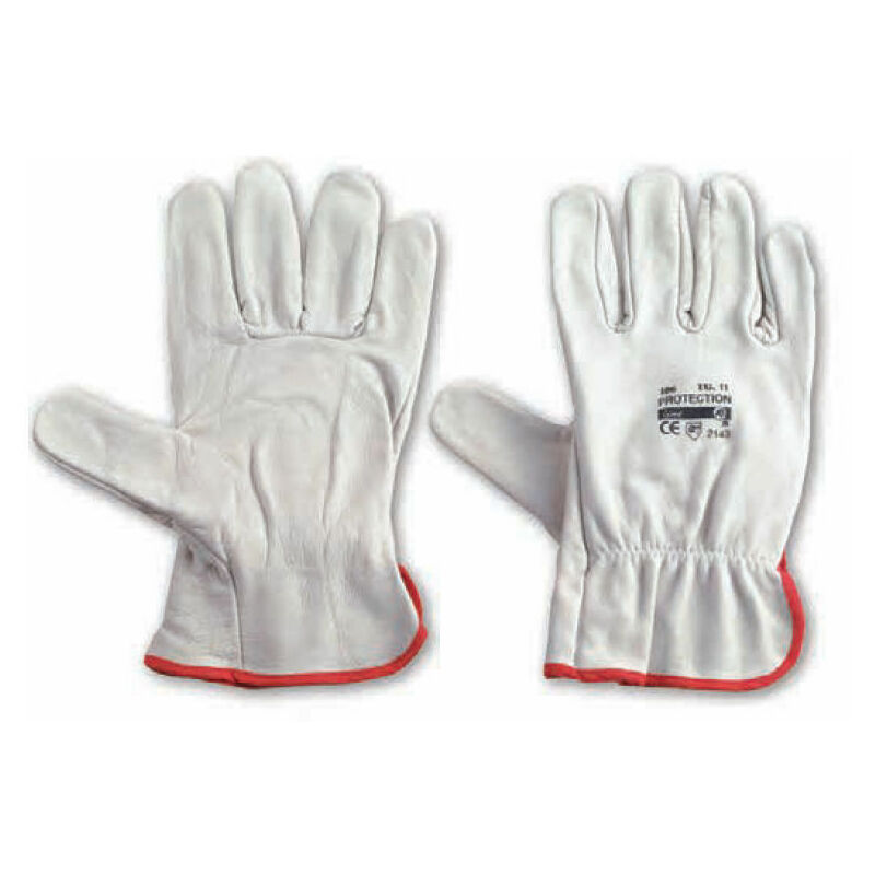 Guanti da lavoro sicurezza pelle antinfortunistica fiore bovino vitellino orlato TAGLIA 10 SPESSORE MM 1:1.2 COLORE BIANCO