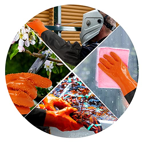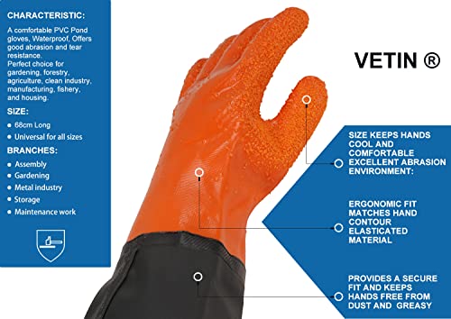 Guanti Lunghi di Gomma Impermeabili, 68 cm Guanti in Gomma per Sabbiatrice Modello, Guanti da Laghetto in PVC Rivestiti per Pesca Domestica Agricoltura Zootecnia Industria di Costruzioni, Arancia