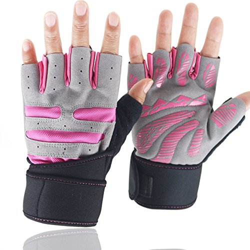 Guanti Mezze Dita Fitness Sollevamento Pesi Allenamento Dell'attrezzatura Manubrio All'aperto Movimento Equitazione Protezione Della Mano Estesa Bracciali Antiscivolo Microfibra Gel Di Silice,Pink,L