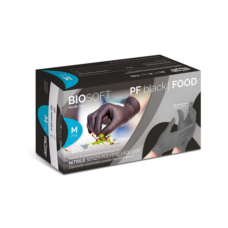 Guanto in nitrile nero, senza polvere, testurizzato sulle dita, idoneità alimentare.Senza polvereClorinatura internaColore: Nero Dita testurizzateForma ambidestroNon sterilePolsino salva strappoIdoneità alimentareVantaggi:Sensibilità, elevata protezione, massimo comfort Taglie / Sizes: S / 6-6,5M / 7-7,5L / 8-8,5XL / 9-9,5La confezione contiene 100 pezzi N.B. SELEZIONARE LA TAGLIA Prodotto di qualità LA FATTURA VIENE EMESSA PER IMPORTI SUPERIORI A 20 € E VA RICHIESTA NEL MOMENTO DELL' ACQUISTO