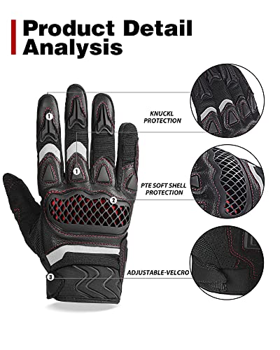 Guanti da moto estivi da uomo Touchscreen traspirante Full Finger Street Off-Road Racing Motocross Protezioni Guanti da moto Moto con protezione morbida sulle nocche (L, Rosso)