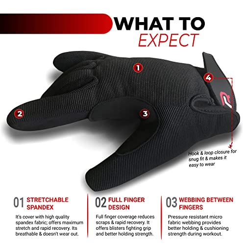 R2F Comodi e stabili - Questi guanti da palestra a dita intere progettati con pelle sintetica in microfibra utilizzata nella sezione del palmo e 96% poliestere, 4% spandex utilizzato sul lato superiore della mano forniscono traspirabilità alle mani mantenendo la forma naturale.