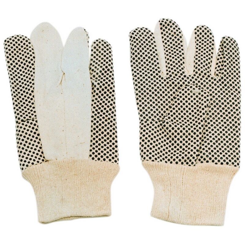 In Tessuto Di Cotone Beige. Palmo Puntinato In Pvc Nero, Polso In Maglia Di Cotone. Misure: Uomo
